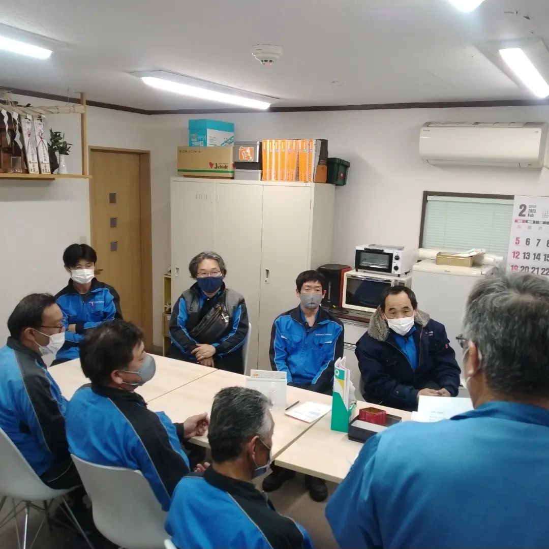 ワイエス物流の安全ミーティング週間です。毎日ドライバーさんの帰社時間に合わせて開催しています。ドライバーさんごとに運転の癖を分析、理解してもらい、安全運転に生かしてまいります。本日は雪模様ですがご安全に!
