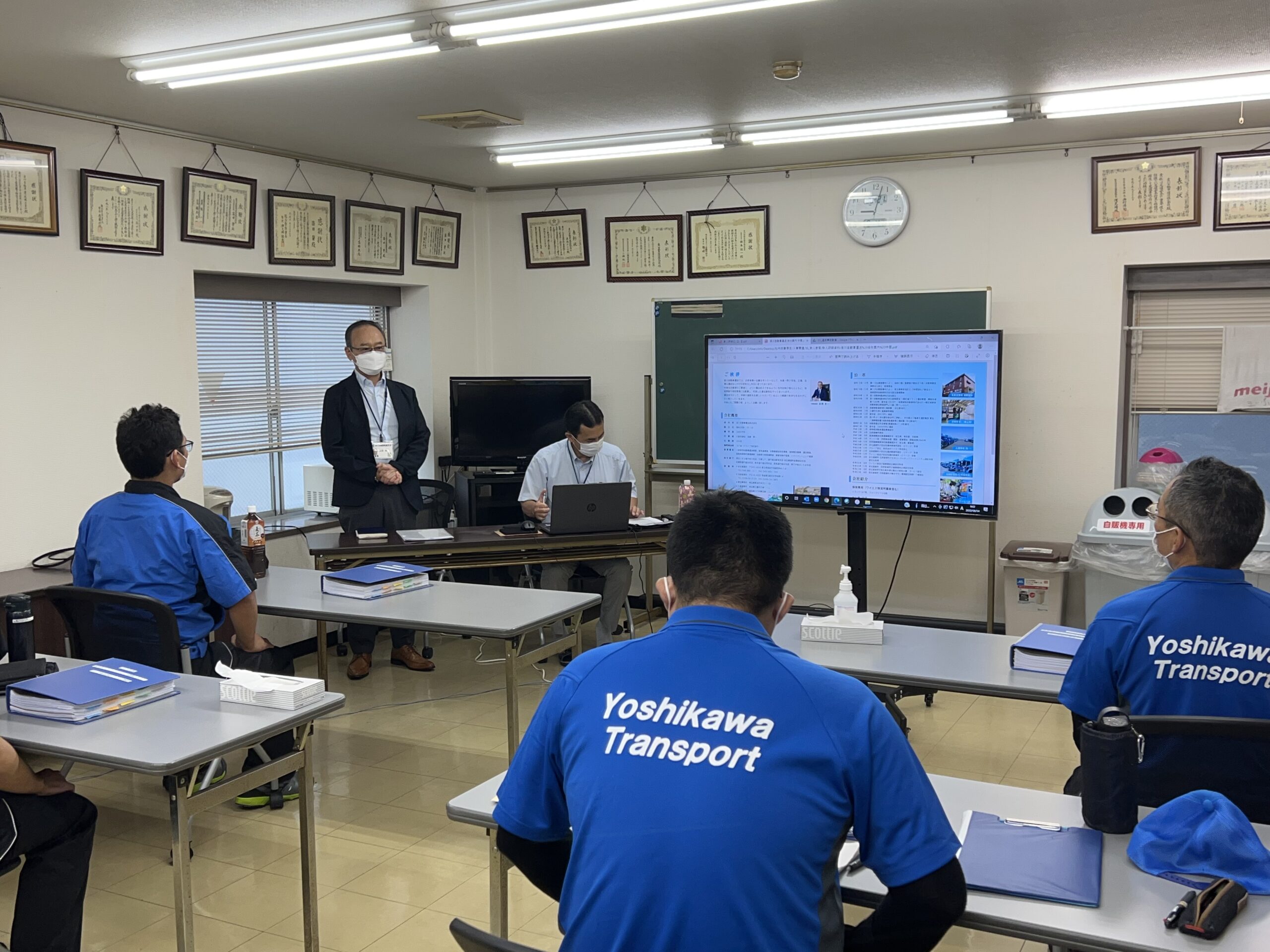 社長の挨拶に始まり、2日に渡る初任運転者研修を実施。