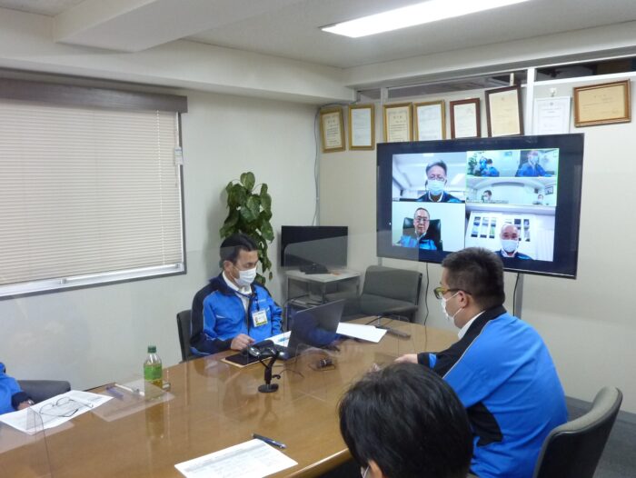 360度撮影カメラです。会議室内全員の顔を1台のカメラで映します。複数の拠点の管理者とweb会議を実施してます。