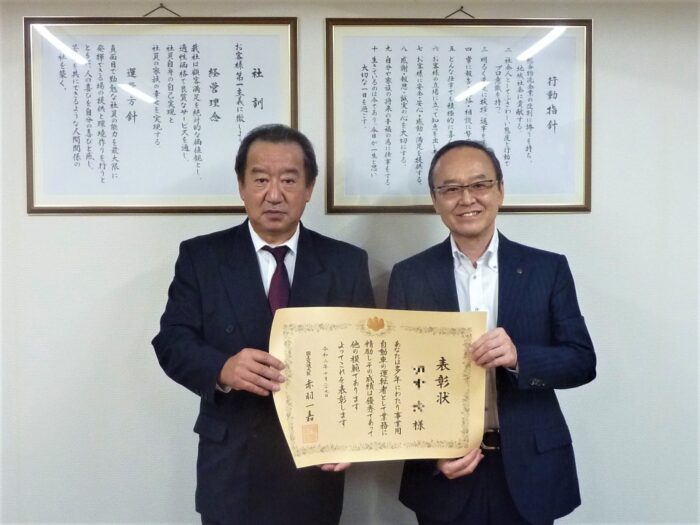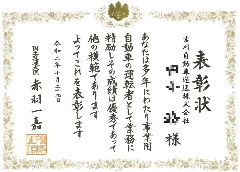 国土交通大臣から表彰されました。【埼玉県越谷市の運送会社は吉川自動車運送】