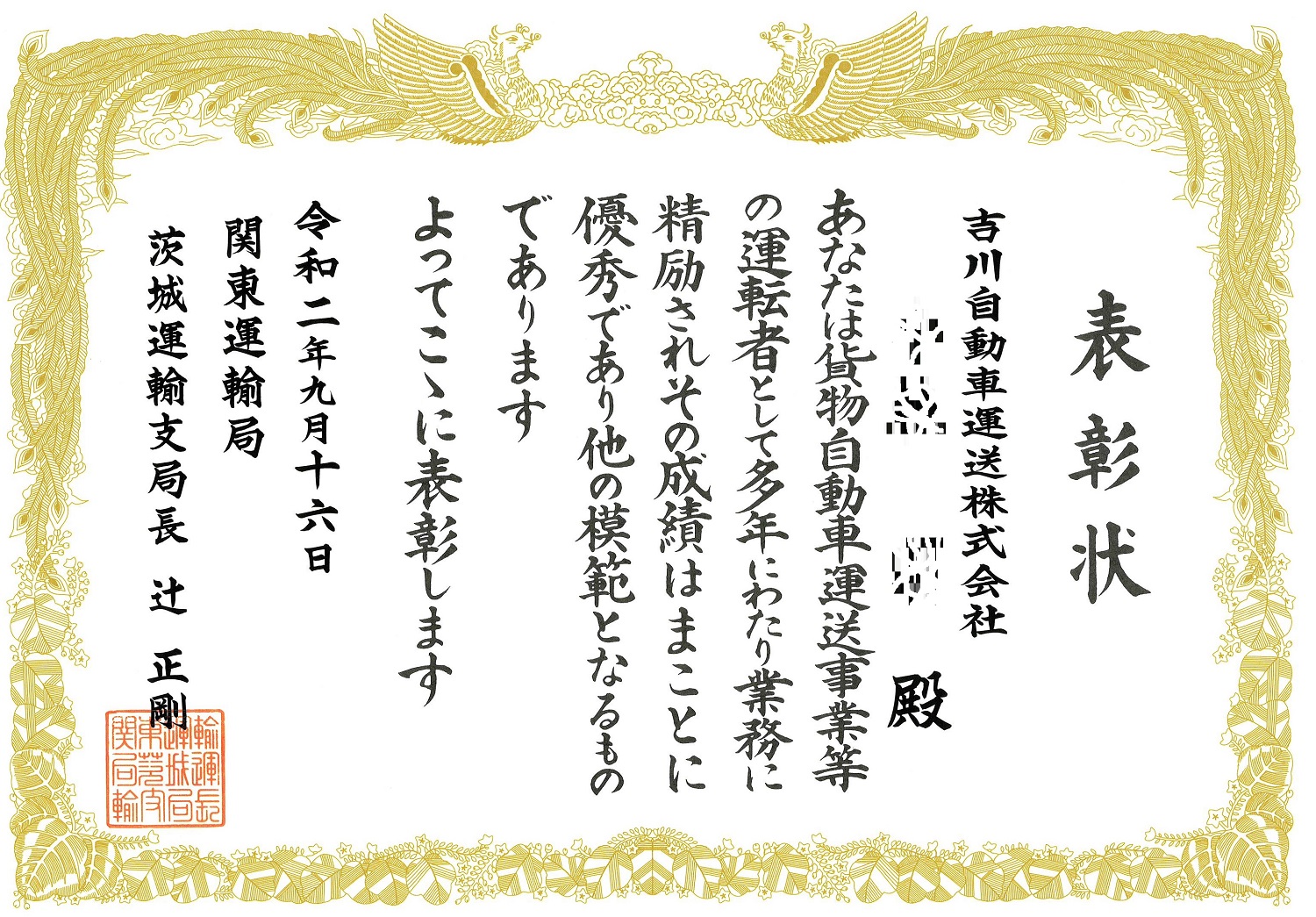 石岡営業所の複数名の乗務員が茨城運輸支局長表彰を受賞しました。これからも安全な輸配送を継続します。