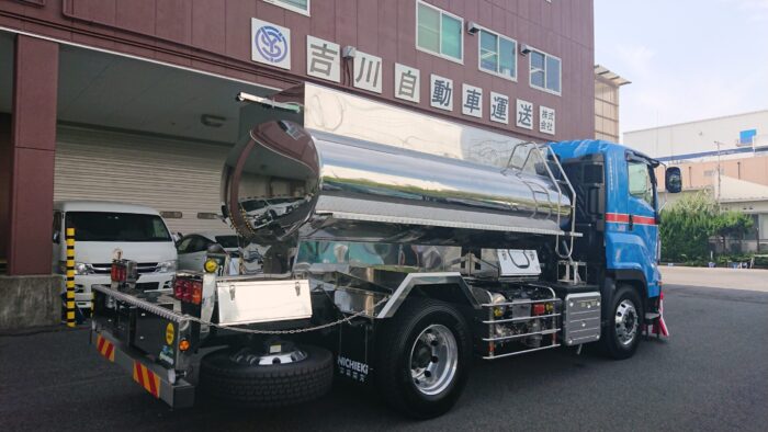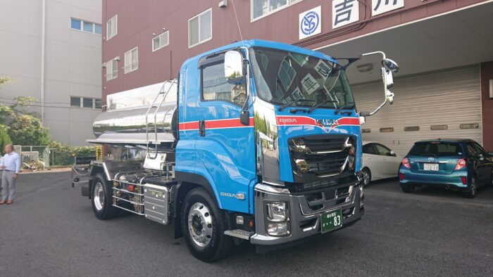 今回納車されたステンレス製タンクローリー車は、主にみりん等の調味料を運ぶ車両です。